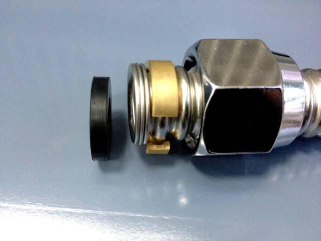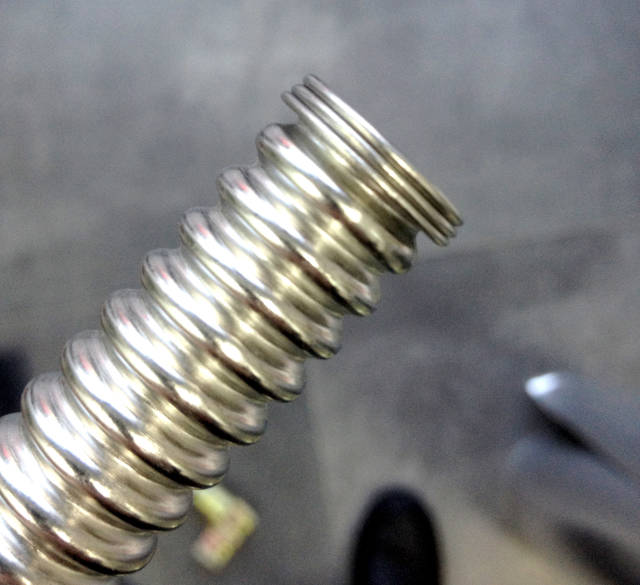 4、成形前部分套入螺母,成型后部分卡上銅箍和皮墊,如此,即完成了波紋管的選材及安裝,靈活省時省力,也相對經久耐用,正在成為越來越多家庭的選擇。